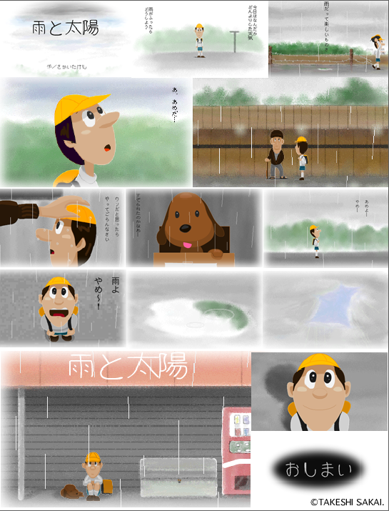 | 51万アクセス記念作品「雨と太陽下敷き」 (2004年8月28日) お気に入りの作品の中のひとつを下敷きにしてみました。 |