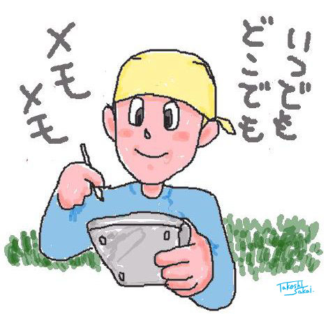 | 53万アクセス記念作品「のもうじゃないか」 (2004年11月23日) どこでもいつでも持ち出せる。好きな時に遊べる、メモれる。僕はザウルスユーザーでもあります。この作品と上いくつかはそのザウルスで描いたもの。 |