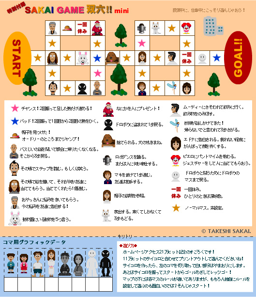 | 21万アクセス記念作品「双六」 (2002年2月7日) 11万のときにスゴロクのサイコロを作ったので、このときにはボードを用意。 |