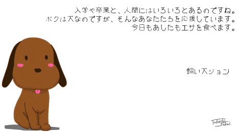 | 23万アクセス記念作品「飼い犬ジョン」 (2002年4月1日) 『雨と太陽』での捨て犬ジョンは、とうとう飼い犬になったのだ!よかったね〜 |