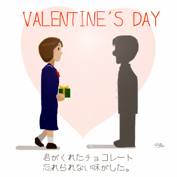| バレンタイン記念作品「VALENTINE'S DAY」 (2002年2月13日) 去年はやってないのに気紛れにこんなイラストを作ってみました。14日までの限定公開。それだけにこのイラストを見のがした人は多い。 |